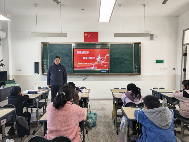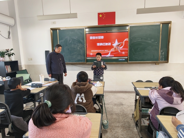 为深入推进爱国主义教育,引导学生传承红色基因、厚植家国情怀,11月26日下午,扬中市三跃中心小学关工委常务副主任张纪龙走进五年级课堂,以“重走长征路 传承红色魂”为主题,为同学们带来了一堂生动深刻的红色主题班会课。