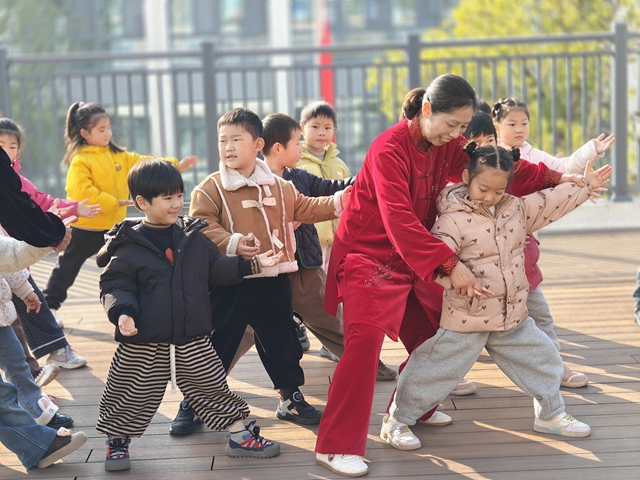 太极拳是太极文化的重要组成部分,集颐养性情、强身健体、技击对抗等多种功能为一体,具有深厚的文化内涵和浓郁的中国传统特色。12月18日,为增强幼儿对中华优秀传统文化的认知与热爱,扬中市文化新村幼儿园充分发挥祖辈资源,邀请关工委“银龄太极团”的两位奶奶来园助教,让小朋友们零距离接触非遗运动太极拳,共享别具一格的“老少太极乐”。
