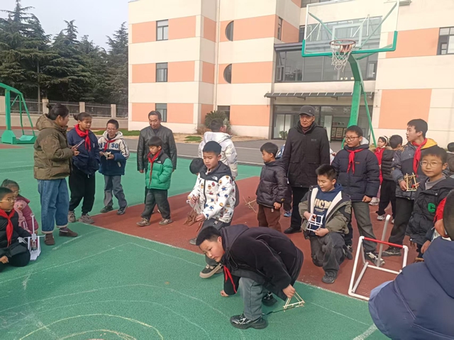 活动现场,投石车比赛区域热闹非凡。关工委的老同志们围在孩子们身边,耐心讲解投石车的构造原理与操作技巧。他们俯身示范,手把手指导学生调整角度、控制力度,还结合自己的生活经验,分享力学小知识。在老同志的悉心点拨下,孩子们不断改进投石策略,一次次将“弹药”精准投出,欢呼声、喝彩声此起彼伏。