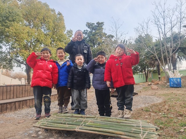 “爷爷,这些竹子要怎么系才不会松呀?”冬日暖阳下,幼儿园的户外木台上传来阵阵稚嫩的提问。1 月 12 日,扬中市长旺中心园关工委的钱爷爷给大班孩子带来了一场别开生面的“绑竹小课堂”。