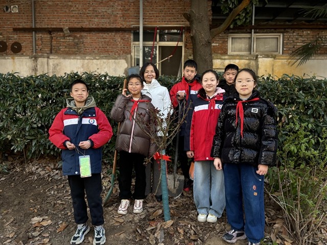 3月12日植树节当天,扬中市江洲小学关工委老教师与六年级学生一起,在校园里种下造型可爱的棒棒糖花苗。孩子们挥锹挖土、细心栽植,为即将告别的小学时光种下甜蜜印记。