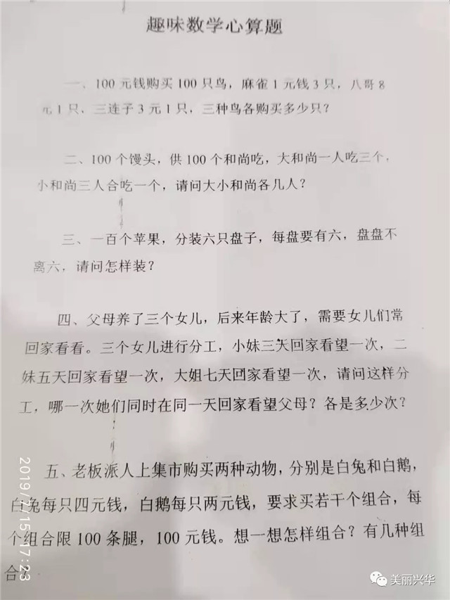 郑叔裔老师结合生活经验给孩子们讲述趣味数学五题。
