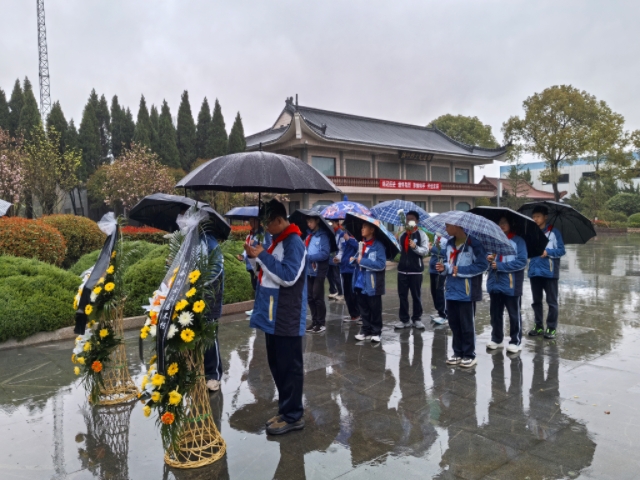 3月30日,扬中市江洲中学德育处组织七年级部分师生代表前往烈士陵园开展清明祭扫活动,学校关工委老同志一同参加。