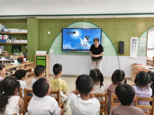 活动伊始,李老师用生动形象的语言,为孩子们讲述了中秋节的由来和美丽传说。从“后羿射日”到“嫦娥奔月”,从古代的祭月习俗到如今家人团聚、分享月饼的传统,在轻松愉快的氛围中,加深了对中秋节文化内涵的理解。
