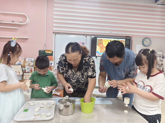 活动伊始,关工委“五老”志愿者退休奶奶姚腊梅、薛美琴、阚建霞通过生动的故事讲述、趣味绘本阅读,向孩子们介绍了中秋节的起源与习俗。孩子们在“奶奶讲故事”环节中聆听了《嫦娥奔月》的传说,和奶奶们一起制作月饼,感受团圆、感恩的传统文化内涵。