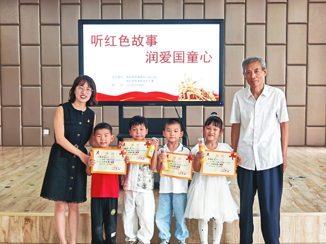 活动最后的表彰环节,朱爷爷和张园长一同为讲述故事的小朋友颁发了奖状和精美的奖品,鼓励他们继续学习英雄精神,争做新时代的好孩子。
