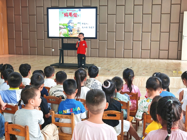 “朱爷爷讲的故事真好听!小英雄真勇敢!”活动现场,朱爷爷的故事点燃了孩子们的热情。随后,大班的四位“故事小明星”也自信登场,依次讲述了《抗日英雄王二小》、《鸡毛信》等经典红色故事片段,童声稚语中传递着对英雄的敬意,赢得了阵阵掌声。