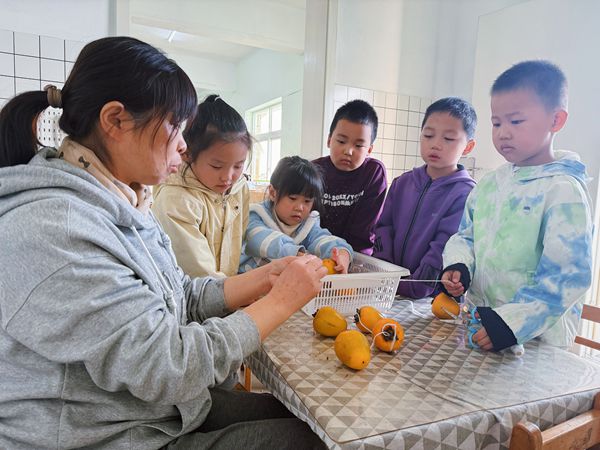 制作时,张老师手把手教孩子们洗柿子、削柿皮。孩子们有的认真洗柿,有的仔细削皮,虽偶有小“失误”,却兴致不减。之后,他们在老师帮助下将柿子挂到晾晒架上,看着橙黄柿子整齐排列,满是自豪。从室内制作到户外晾晒,孩子们全程参与,直观感受柿子变柿饼的过程。