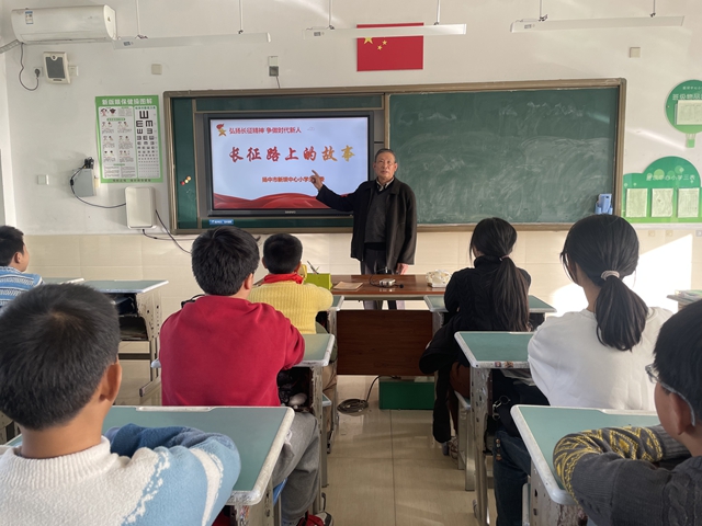 11月28日,扬中市新坝中心小学举办“弘扬长征精神 争做时代新人”主题活动,学校关工委常务副主任蔡训保为同学们讲述长征故事。活动中,蔡爷爷用生动的语言再现了红军长征途中的英勇事迹,传递不怕牺牲、坚韧不拔的长征精神,同学们听得十分专注。
