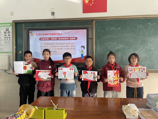 随后,同学们分组制作长征主题小报,将听到的故事和感悟通过画笔与文字呈现。蔡爷爷在旁耐心指导,助力大家用创意传递红色精神。