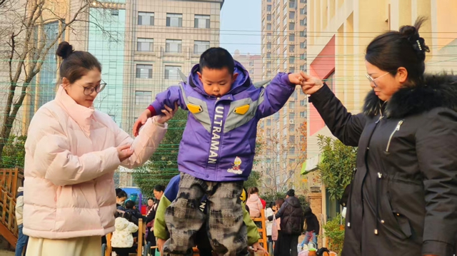 活动中,家长们深入区域游戏、户外活动及集体教学等环节,直观感受幼儿园以幼儿为中心的教育理念与生动实践。区域游戏里,孩子们在美工、建构、阅读等多元环境中挥洒创意、探索乐趣,家长们用镜头记录专注瞬间,深切体会游戏对幼儿能力的促进作用;户外活动中,“老鹰捉小鸡”的欢笑声与跳绳拍球的活力身影交织,家长忍不住加入互动,亲子嬉戏让操场充满温情;集体教学环节,教师通过趣味化设计引导幼儿主动思考,绘本阅读、数学游戏、科学探究等活动牢牢吸引孩子注意力,家长们对教师的专业能力与耐心引导给予高度认可。