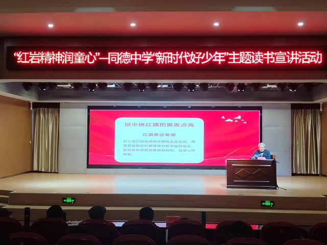 12 月 19 日下午,扬中市同德中学邀请学校关工委常务副主任、老园丁宣讲团成员梅存美老校长走进校园,开展“新时代好少年”主题读书宣讲活动,全校师生及学校关工委老同志代表共同参加了此次活动。