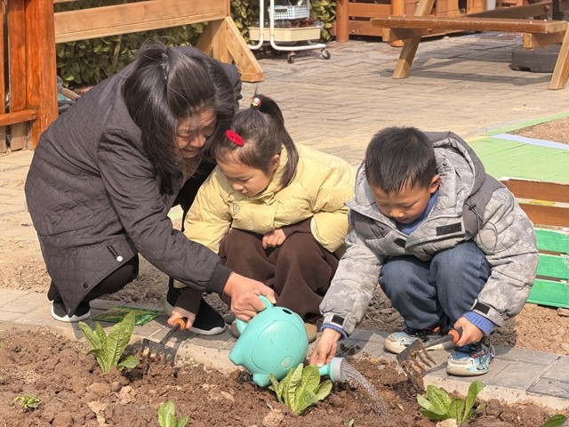 活动伊始,有种植经验的奶奶担任“种植指导员”。在种植区,奶奶手把手教孩子们翻土、播种、浇水,讲解蔬菜生长奥秘。“根要正,土要实,苗才能长得壮。”奶奶们将劳动技能与人生道理娓娓道来。孩子们认真模仿,种下一颗颗蔬菜,也在心中种下尊重生命的种子。