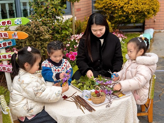 种植结束,关工委组织的家长志愿者与孩子们开展“护绿行动”。大家为小树挂上自制树牌,孩子们用稚嫩笔触写下祝福。在“春日相框”环节,志愿者协助孩子们采集落花嫩叶,用创意封存春天色彩,让环保理念浸润童心。