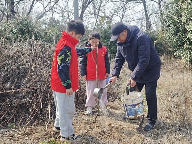 3月12日下午,扬中市三跃中心小学关工委联合兴城村关工委,组织四年级学生走进校外劳动基地,开展了一场别开生面的果树种植实践活动。