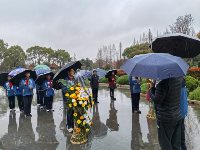 3月30日,扬中市江洲中学德育处组织七年级部分师生代表前往烈士陵园开展清明祭扫活动,学校关工委老同志一同参加。