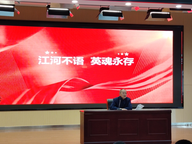 为厚植学生爱国情怀,赓续红色血脉,4月3日,江苏省扬中中等专业学校开展“江河不语 英魂永存”主题团课,关工委常务副主任戴道本老师担任主讲,全校团员齐聚一堂,聆听英雄故事,汲取奋进力量。